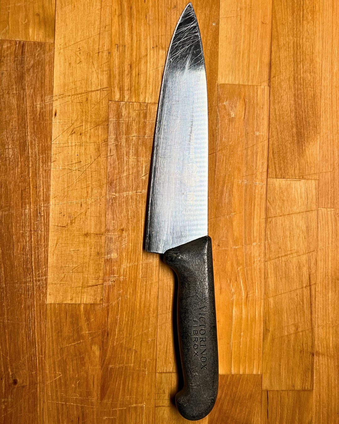 It’s the Victorinox 8” Chef’s Knife. A workhorse—and kind of a legend in the industry. Nothing fancy. Just really solid. It’s made of high-carbon stainless steel and comes from the same folks behind the original Swiss Army knife—which tracks, because it’s just as no-nonsense and reliable. It’s not flashy. It’s not sexy. But it does the job well, every time.