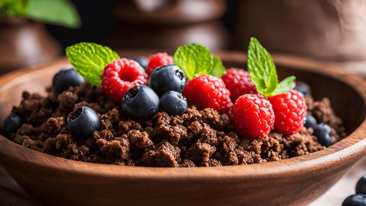 Crisp cocoa crumble to finish scoops of ice cream, add texture to cakes, or anchor a tart.