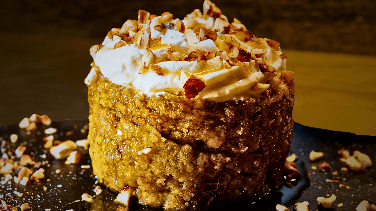 Brown Butter Orange Pumpkin Bundt Cake with Maple Ginger Cheesecake Tunnel, Candied Maple Pecans, and Bourbon Maple Glaze!