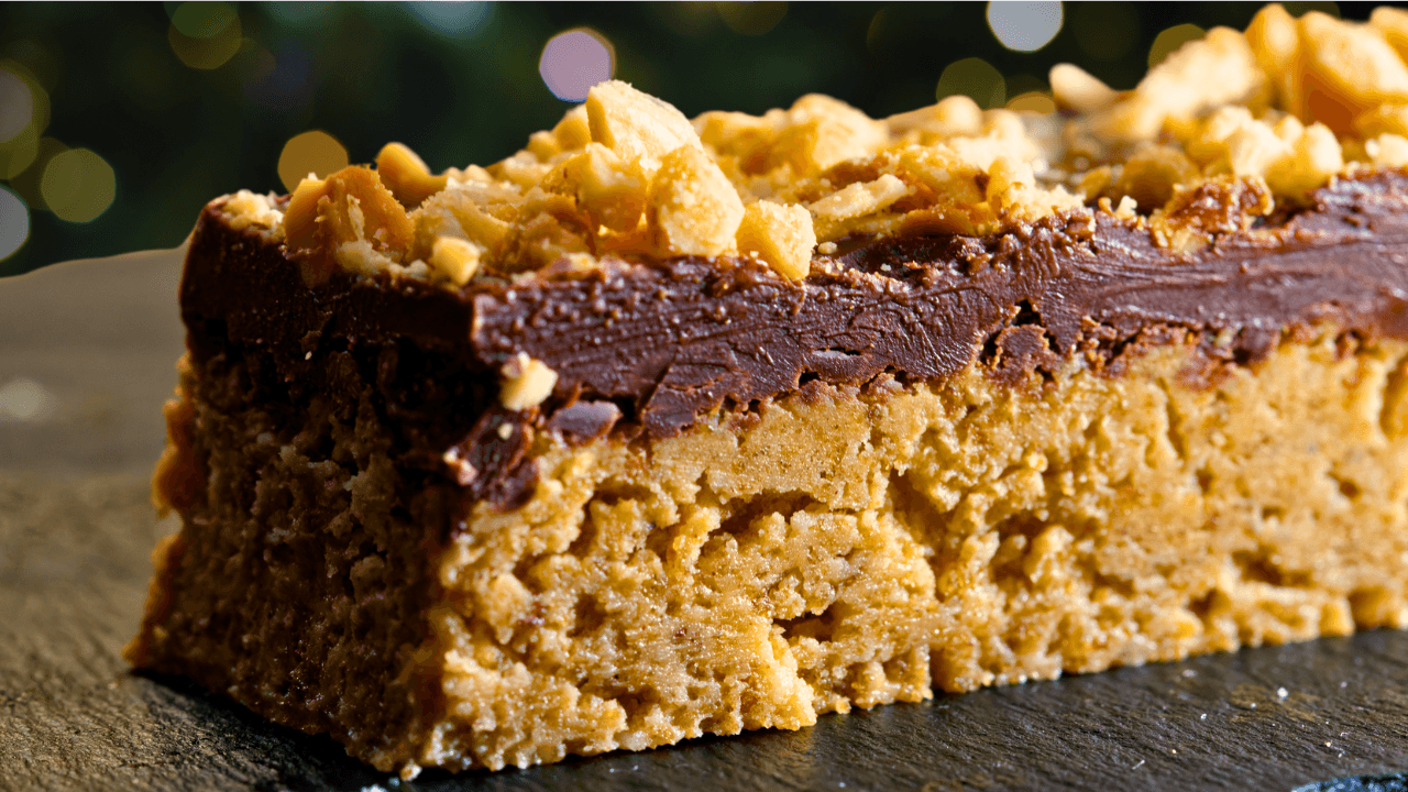 Bribe your way onto the good list with a peanut butter chocolate bar filled with ginger crunch.